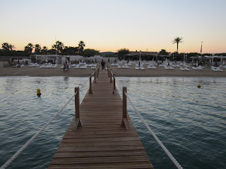Le soir, il y a plus joli à voir que le port et ses bateaux... On passe au travers des vignes (les plages sont assez isolées, accessibles par des routes pas toujours en bon état, c'est le prix de la tranquillité des VIP...) pour rejoindre la plage de Pampelonne désertée ou presque au coucher du soleil... bonheur :).